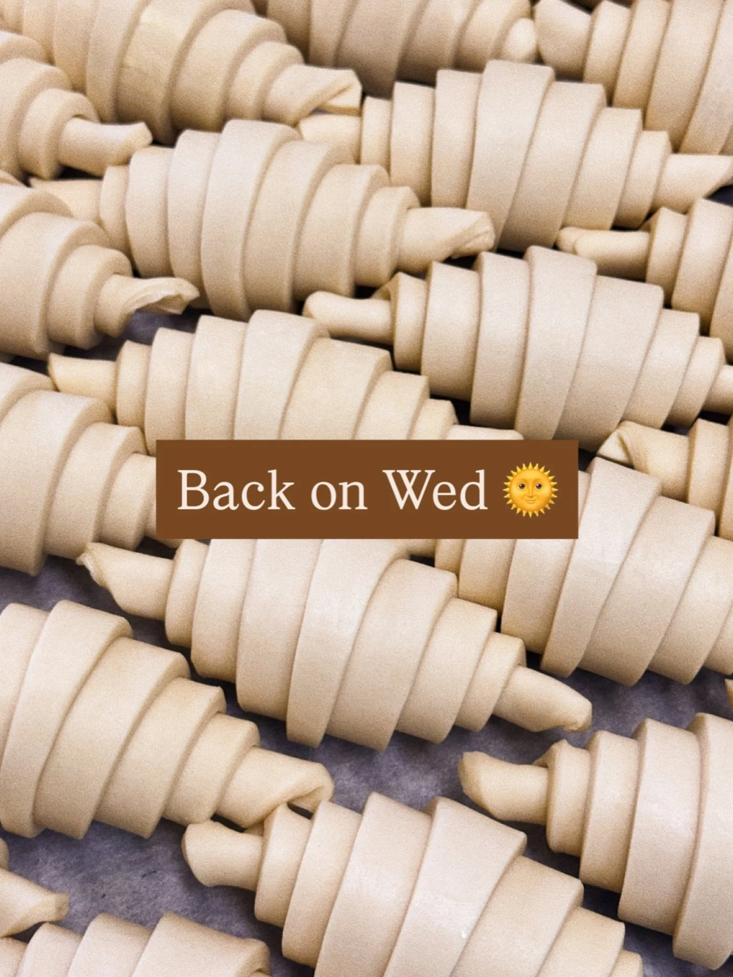 We're only a small team with limited equipments and space. For this reason, we can only bake in small batches and open few hours a day to ensure our products are the very best.